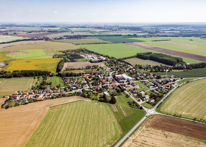 Letecké snímky obce Čepí pořízené v roce 2019.