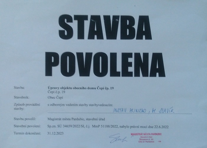 Úvod > O Čepí > Fotogalerie > Rekonstrukce obecního domu Čepí (2022-2023)