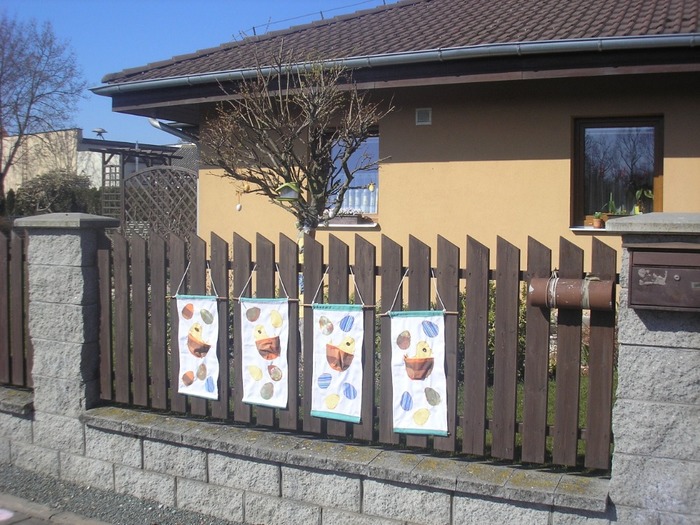 K velikonoční výzdobě inspiruje i paní Růžena Placková textilní výzdobou. Kdo nešije roušky, může vyzkoušet. Ať se oči potěší!